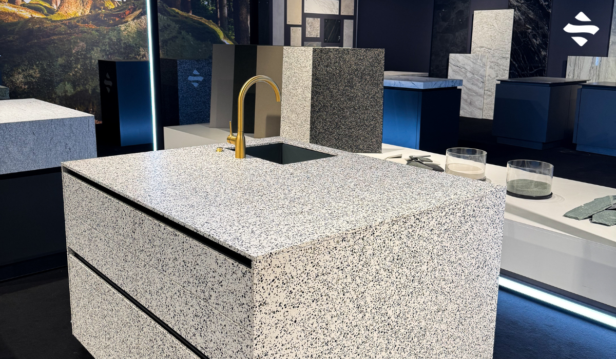 Im Fokus stand auch die Weiterentwicklung unserer nachhaltigen Alpinova-Linie. Dank des RE-STONING-Systems führen wir gebrauchte Arbeitsplatten in den Produktionskreislauf zurück – ein geschlossener Kreislauf, der Ressourcen spart und ein starkes Signal für die Zukunft setzt.