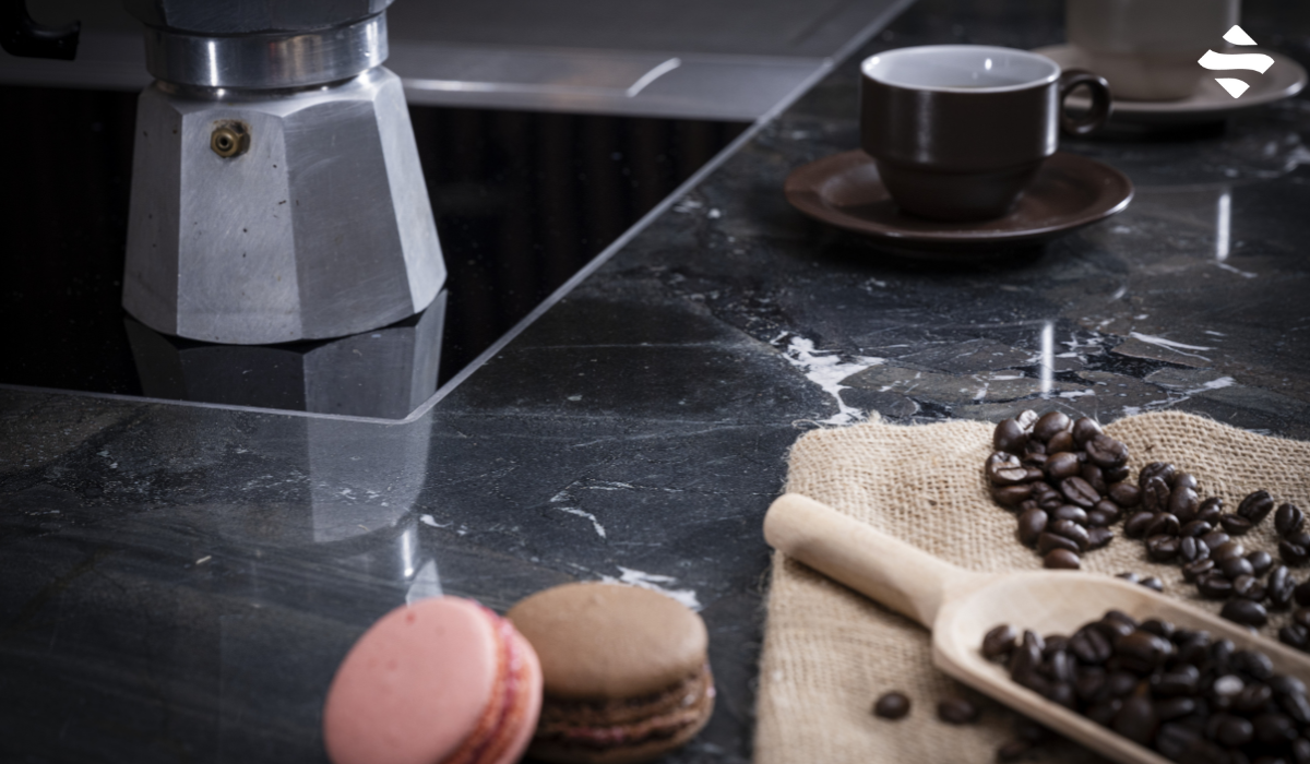 Tipp: Auf einer Natursteinarbeitsplatte oder Kücheninsel wirken natürliche Materialien besonders harmonisch und setzen einen ruhigen, edlen Rahmen.