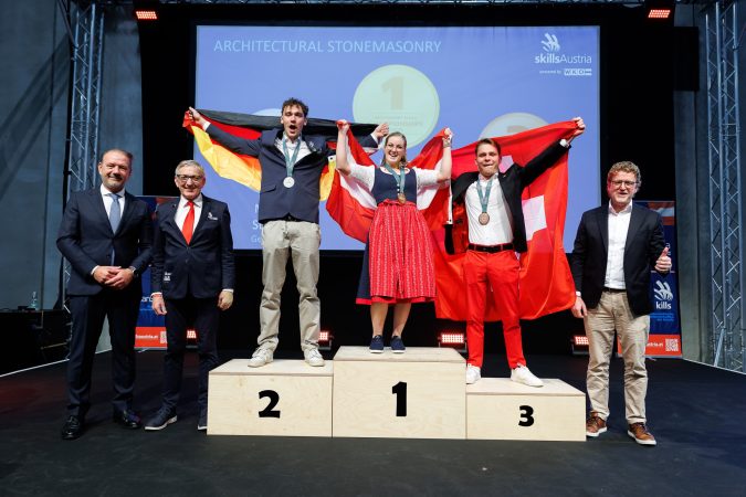 Parallel zu den EuroSkills der SteinmetzInnen fanden in Salzburg auch die AustrianSkills 2025 statt. Hier überzeugte Julian Kasper mit beeindruckender Präzision und starker Leistung und sicherte sich verdient den Titel des Vizestaatsmeisters der Steinmetze.