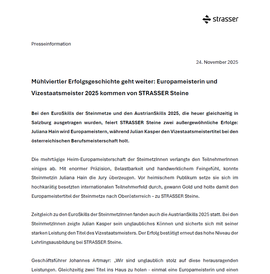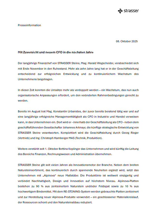 STRASSER Steine: Mit Zuversicht und neuem CFO in die nächsten Jahre