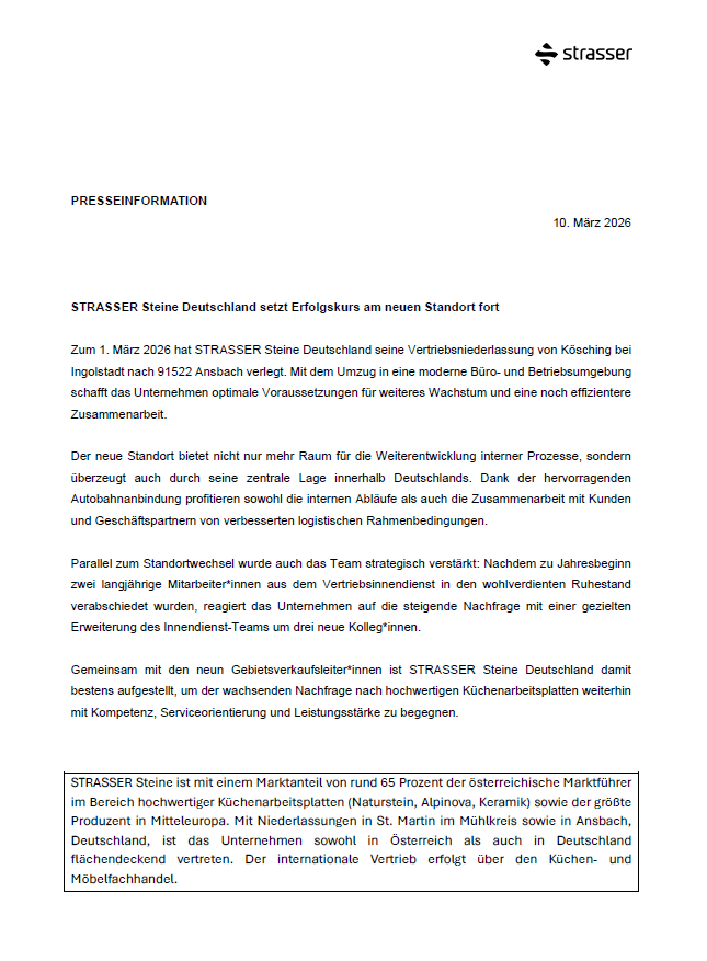 STRASSER Steine: Mit Zuversicht und neuem CFO in die nächsten Jahre